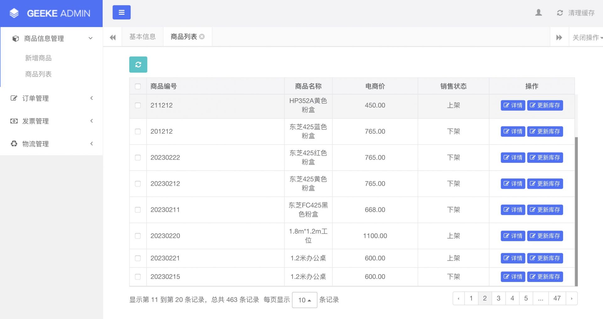 開發(fā)內容:商品管理、訂單管理、發(fā)票管理、物流管理;