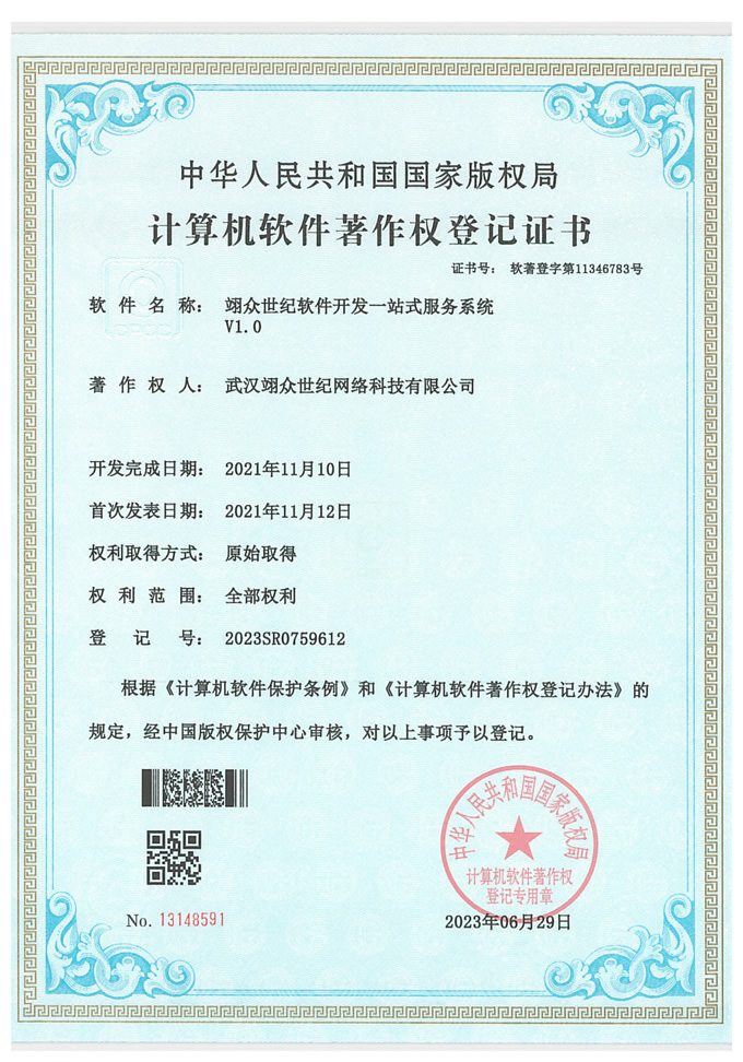 翊眾世紀(jì)資質(zhì)榮譽再添4位新成員:翊眾世紀(jì)軟件開發(fā)一站式服務(wù)系統(tǒng)、翊眾世紀(jì)軟件開發(fā)穩(wěn)定性測試集成系統(tǒng)、翊眾世紀(jì)軟件開發(fā)信息化集成系統(tǒng)、翊眾世紀(jì)軟件開發(fā)信息分析交互化系統(tǒng)