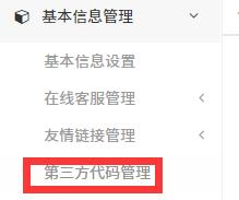 2.進(jìn)入后臺(tái),點(diǎn)擊左側(cè)菜單欄中的【基本信息管理】,在里面找到并點(diǎn)擊【第三方代碼管理】