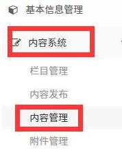 1.進(jìn)入后臺(tái),點(diǎn)擊左側(cè)菜單欄中的【內(nèi)容系統(tǒng)】,點(diǎn)擊【內(nèi)容管理】