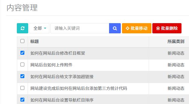 以上就是在網(wǎng)站后臺(tái)網(wǎng)站后臺(tái)批量刪除內(nèi)容的操作步驟。