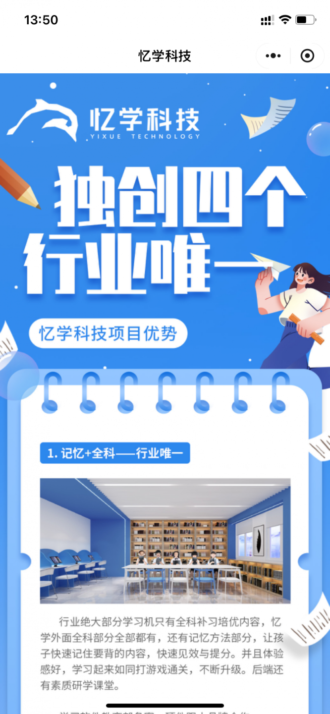 憶學(xué)科技(簡(jiǎn)稱(chēng)“憶學(xué)”)是國(guó)內(nèi)高效記憶AI智能提分專(zhuān)業(yè)品牌!由國(guó)家高新技術(shù)企業(yè)、科技型中小企業(yè)才智英才教育科技有限公司自主研發(fā),國(guó)際記憶大師及頂尖學(xué)科專(zhuān)家領(lǐng)銜的專(zhuān)業(yè)資深的教研團(tuán)隊(duì)與軟件開(kāi)發(fā)技術(shù)團(tuán)隊(duì),融合創(chuàng)新記憶方法與大數(shù)據(jù)模型、人工智能AI技術(shù)、互動(dòng)教學(xué)等先進(jìn)技術(shù),將教研成果轉(zhuǎn)化為顛覆性和前瞻性的智能教育產(chǎn)品,是一套讓學(xué)習(xí)更高效 、提分更精準(zhǔn)的高效學(xué)習(xí)與訓(xùn)練系統(tǒng)。