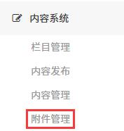 1.進(jìn)入后臺(tái),點(diǎn)擊左側(cè)菜單欄中的【內(nèi)容系統(tǒng)】,在里面找到并點(diǎn)擊【附件管理】