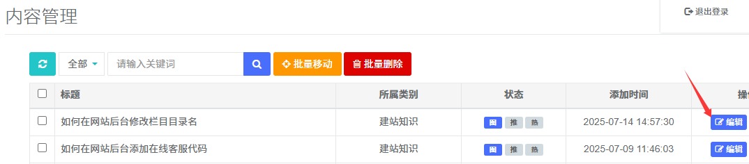 1. 進入后臺,再選擇要勾選熱門的文章,點擊【編輯】